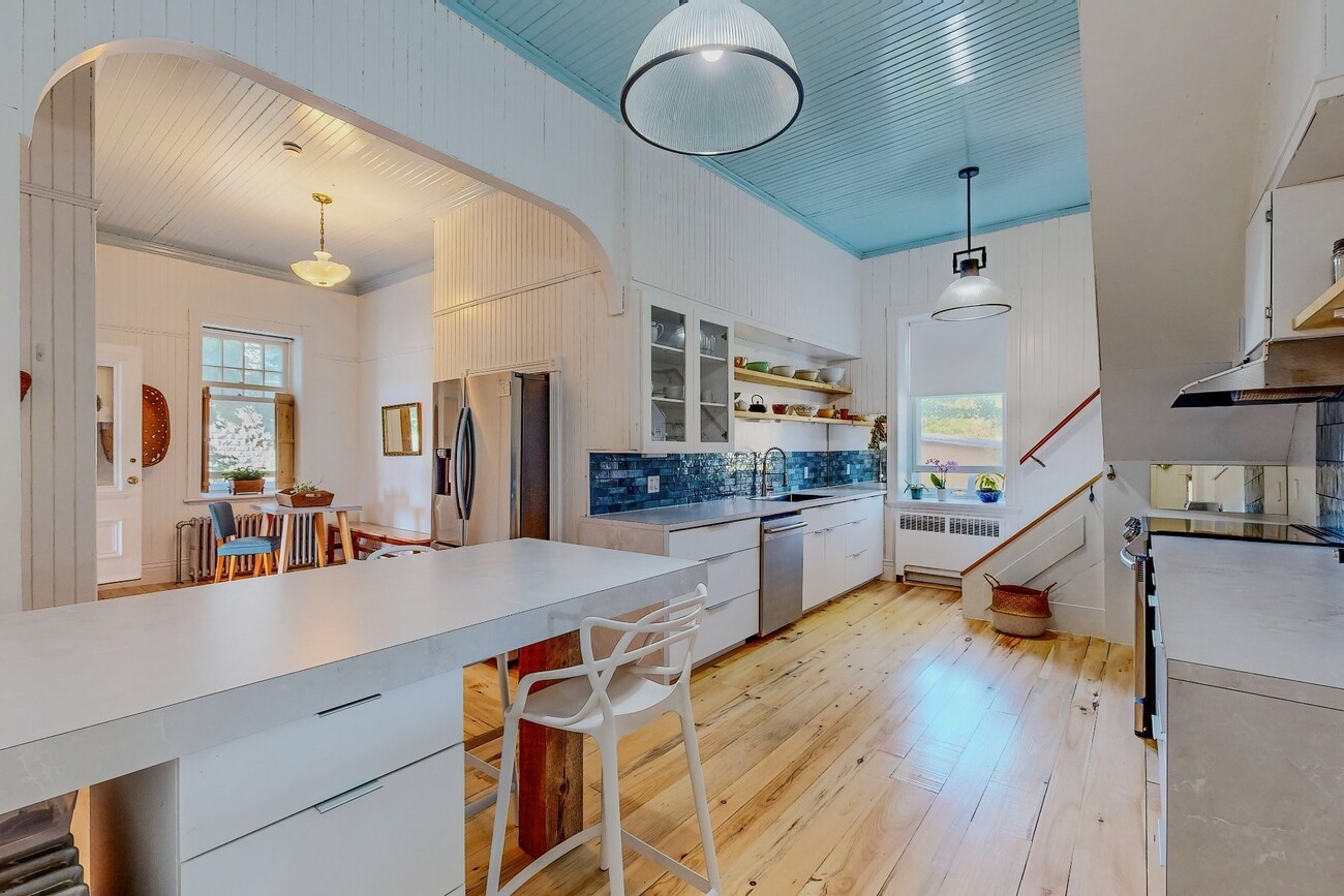 Autrefois, cette maison d’hôte en Gaspésie était la demeure du prêtre et siège de la Fabrique paroissiale. Ainsi, le presbytère de Sayabec a vu défiler des décennies d’histoires et de silence. En 2021, après un long sommeil, il a trouvé en Dominique Houle une nouvelle gardienne. Dominique l’a restauré avec patience, lui rendant tout son cachet patrimonial : briques anciennes, fenêtres d’origine, portes en bois massif. Rien n’a été trahi, tout a été ravivé. Les murs respirent encore l’histoire, mais résonnent désormais des voix de voyageurs, d’artistes et de rêveurs venus s’y ressourcer.